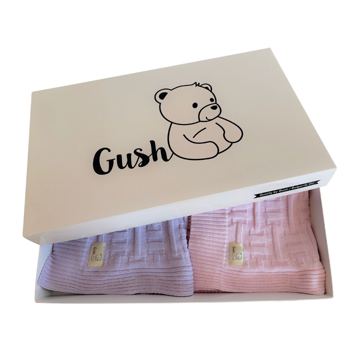 Комплектът включва два броя Детско памучно одеяло Gush, в еднакъв или различен цвят.